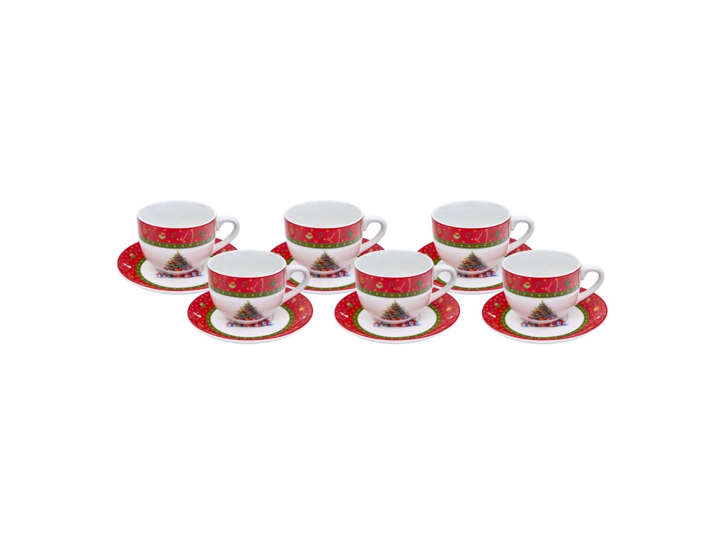 Šálka na kávu sada 6ks s vianočným motívom - Červená. Elegantná vianočná šálka z prémiového porcelánu s objemom 215 ml. Táto šálka na kávu je vhodná do umývačky aj mikrovlnky a ku každéj šálke je pribalená praktická podšálka.