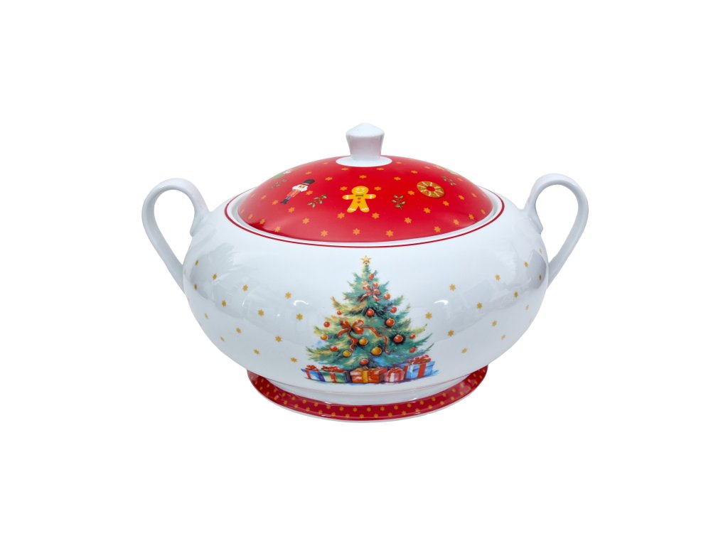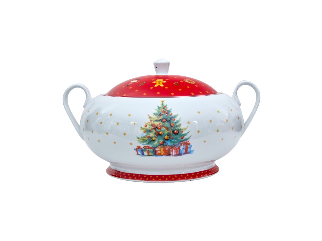 Vianočná misa na polievku – Červená. Štýlová vianočná misa z prémiového porcelánu s objemom 3,2 litra. Polievková misa vhodná do umývačky riadu aj mikrovlnky.