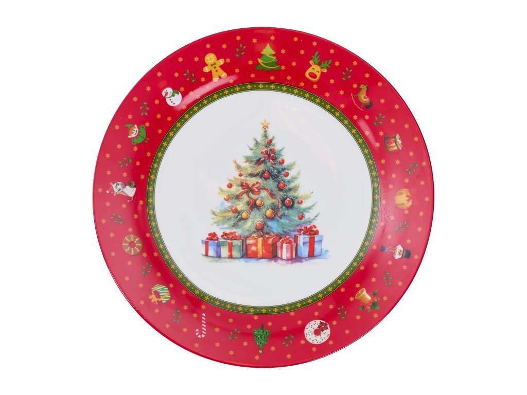 Vianočný plytký tanier – Červený. Elegantný vianočný plytký tanier z prémiového porcelánu s priemerom 27 cm. Tento červený plytký tanier je vhodný do umývačky riadu aj mikrovlnky.
